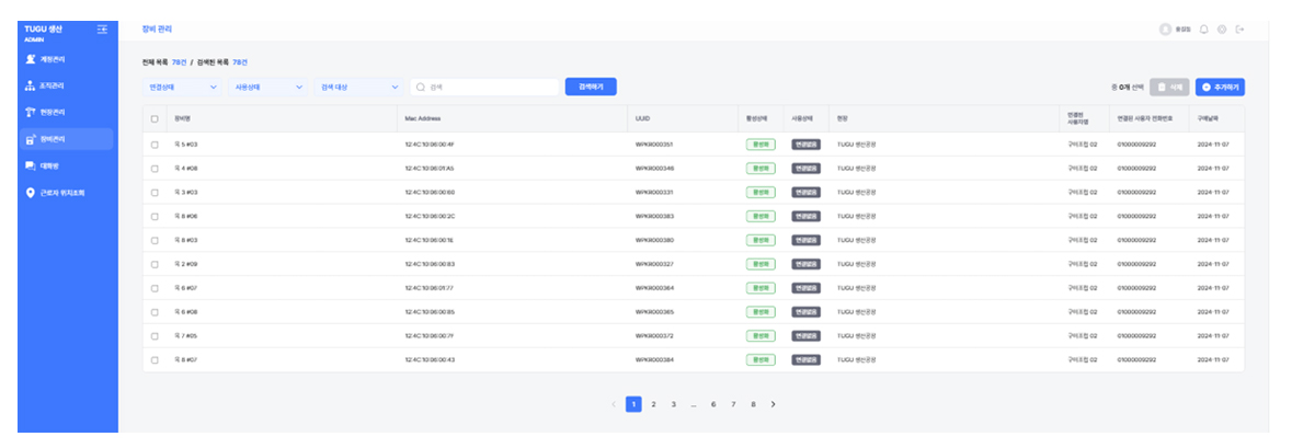 등록된 장비들의 활성 및 사용 상태 등 정보확인 및 통제를 할 수 있습니다.